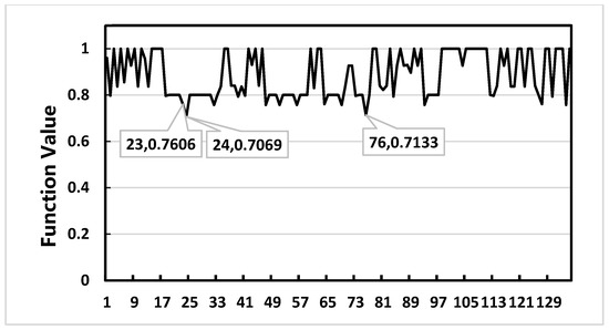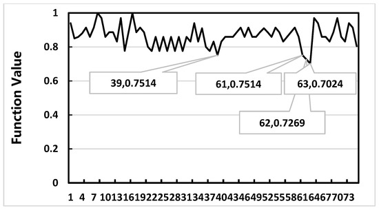 By comparing Figure 5 and Figure 6, it can be found that the function values of the structured data without using the MMTD method are closer to each other, the range of fluctuation is relatively small, and there are obvious ambiguities between some data. For example, the 23rd and 24th data are very close to the same data quality evaluation of “Level 3” in Figure 6, while Figure 5 clearly distinguishes the quality of the 23rd and 24th data as “Level 3” and “Level 4”, respectively; similarly, it can be seen that the quality of structured data without using the MMTD method is relatively close, the range of fluctuation is relatively small, and there are obvious ambiguities between some data. “Similarly, Figure 7 has a smaller range of fluctuation and cannot clearly deal with the ambiguity of the data. For example, the 37th and 39th data quality evaluations in Figure 7 are “Level 3”, while Figure 8 is “Level 3” and “Level 4”, respectively. This shows the effectiveness of this paper’s method in dealing with data ambiguity.