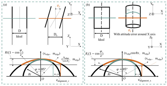 (a) Influence of attitude error of roll workpiece around Z-axis; (b) influence of attitude error of roll workpiece around X-axis.