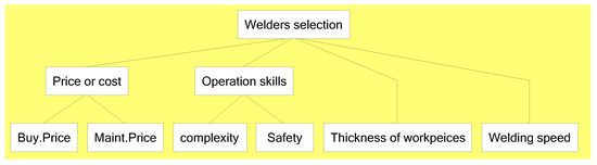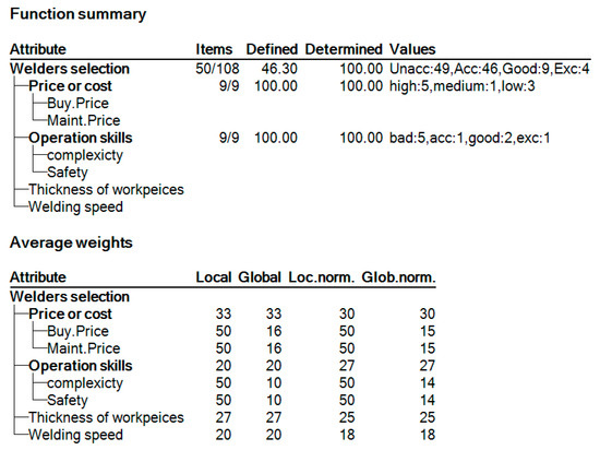 The weights that affect the factors that influence the selected welding machine options are as follows: