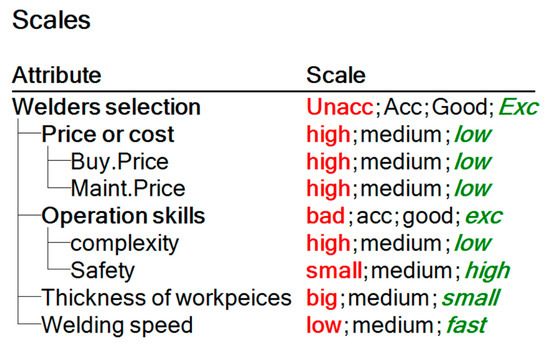 Unlike studies comparing existing paradigms, our study provides an evaluative framework. This framework considers capacity, pricing considerations, welding speed and precise workpiece thickness. Although these selection criteria may seem straightforward, they are part of a methodology that effectively combines quantitative elements to address the challenges in selecting industrial machinery. The selection of industrial welding machines (welders) that combine DEX and EDAS [7,11,13,14,22,23,24,25,26] has been suggested in this study. The purpose of this study is to present an MCDM methodology for industrial machines selection that is straightforward, dependable and resilient while requiring a reduced number of calculations. No research has ever combined the DEX [8,19,27,28] and EDAS approaches to solve the machines selection challenge. There are three advantages to using the DEX method for calculating weights; (i) it consistently yields results, (ii) it requires bilateral comparisons compared to other MCDM methods and (iii) it simplifies the process for decision makers by facilitating the selection of the best and worst criteria and comparing them with others. The EDAS method was selected for evaluating the machines because it is an integrated approach that finds applications in various fields while being computationally more efficient than other MCDM methods like the CODAS, VIKOR and MOORA techniques that were analyzed, and their ranking outcomes were employed. A sensitivity analysis was conducted on these criteria. The results indicate that alternative options are susceptible to weight assignments and play a role in the selection process (refer to Table 1).