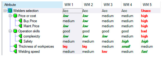Tree of DEX for the attributes of the performance evaluation of welders.