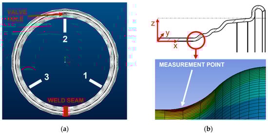 A scheme representing the location of the measurement points on the complete rim is shown in Figure 19. The points are located approximately 120° from each other along the rim circumference, on both sides of the rim.