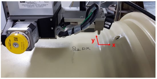 As already underlined, the rim axial direction (x) is the most important one. In fact, it is the principal direction of the stress acting in that specific rim radius both in service and fatigue testing conditions. This is proven by the crack development paths experienced in field use on similar components [], which are perpendicular to that direction.