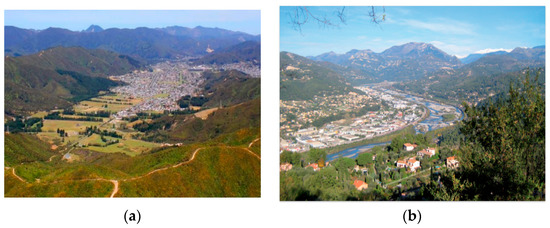 Illustration of the site of a basin. (a) Lower Hutt valley basin in Wellington, New Zealand. (b) Lower Var valley basin in Nice, France.