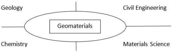 The use of geomaterials spans long back into human history and relicts of man’s endeavours remain as evidence of practical use of rocks and minerals for the benefit of evolving societies. As a discipline, the formal study and practice of geomaterials has evolved to be a distinct topic since the mid twentieth century. The practice of geotechnical and civil engineering gave rise to a sub-discipline, focused on the engineering properties of materials won from the earth (but largely excluding ores). Ore geology and production metallurgy have become subjects in their own right, focused on the recovery and processing of metals. Geomaterials, however, owe their early evolution to geotechnical activities which were concerned largely with the physical, rather than chemical, properties of consolidated and unconsolidated materials from the earth. Fookes [1] gives a substantial review of the topic as he saw it in 1991. Since then, this field of activity has expanded considerably, to include many new materials such as tyre crumb, ceramic wastes, combustion products and many other anthropogenic materials, which are not primary products of the extractive industries, but represent resource-efficient use of industrial by-products in much the same way as, for example, natural aggregates. The field currently occupies a space between four older disciplines and has become firmly established in its own right (Figure 1).