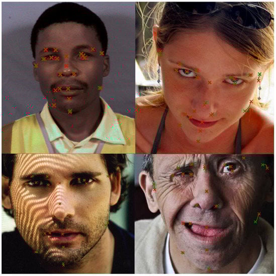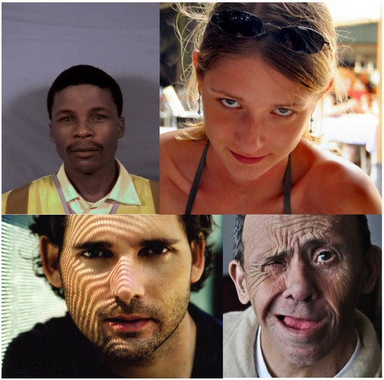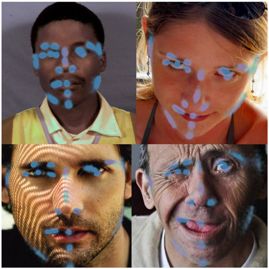 - Milborrow, S.; Morkel, J.; Nicolls, F. The MUCT Landmarked Face Database. Pattern Recognition Association of South Africa. 2010. Available online: http://www.milbo.org/muct/The-MUCT-Landmarked-Face-Database.pdf (accessed on 5 August 2023).