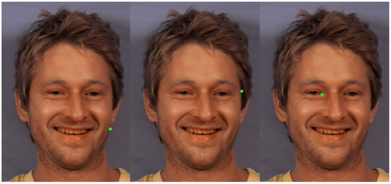 The second component of the framework is to consider that, for most regression problems, it can be presumed that there exists some canonical ground truth value for each distinct point or landmark in the dataset that can be modelled. In some circumstances, consistently identifying may be easily achieved, while, in others, identifying may not be possible. This is particularly possible in situations where there is a high degree of subjectivity in the task (such as facial landmarking in the second experiment of this study) or where critical information is missing, e.g., the feature of interest in the image is obscured and cannot be easily seen. When the canonical ground truth annotation is being identified by an annotator a, their selection can be represented as , where (Equation (3)) describes the error attributed to the annotator’s interpretation of the position to be annotated. For landmarks/positions where there is a high degree of uncertainty, is also expected to be high. If we also ask each annotator to identify the same position more than once, there will be an additional error source resulting from either their ability to consistently identify the value or due to the care taken in selecting the value; therefore, . For an annotator a, if there is a large amount of variability between each of their repeated selections (), then (Equation (2)) is also expected to be high.