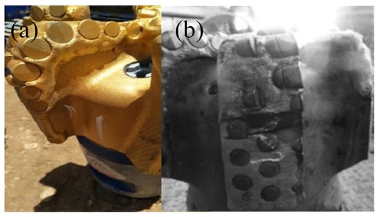 Effect of using a bit: (a) Before using the bit with a mixed arrangement cutter; (b) After using the bit with a mixed arrangement cutter.