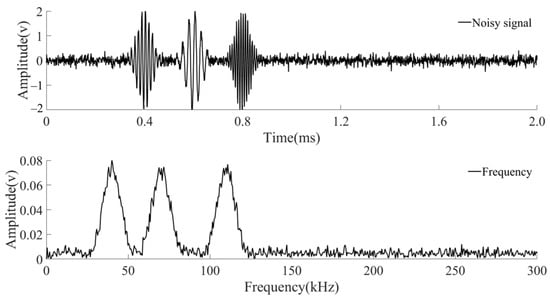 To verify the effectiveness of the method proposed in this paper for denoising AE signals, simulation signals with different frequencies are used to verify the proposed method. The mathematical model of AE constructed by [] is expressed as follows: