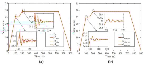 Two control methods’ system output curves: (a) MFAC output curve; and (b) MFAC-OER output curve.