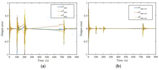 Two control methods’ system output error curves: (a) MFAC output error curve; and (b) MFAC-OER output error curve.