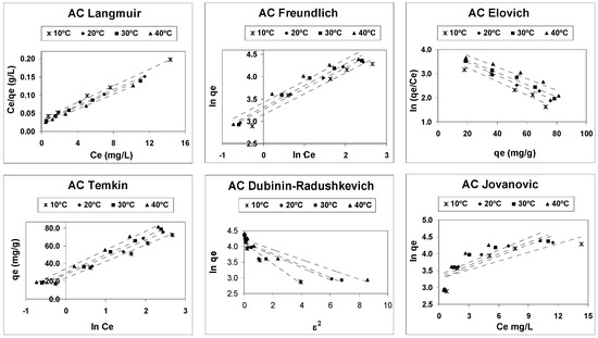 | Temkin isotherm | Jovanovic isotherm | Dubinin–Radushkevich isotherm | ||||||||
