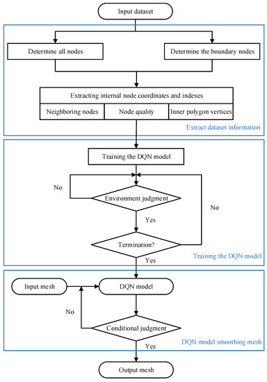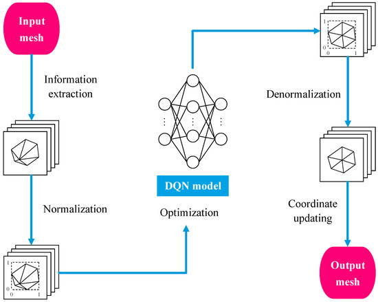 Workflow of the proposed angle and a deep Q-network-based mesh smoothing.