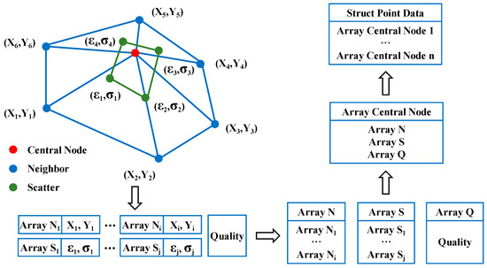 The information of all nodes in the dataset can be extracted using the above method. We store the node information of all internal points in memory to facilitate subsequent extraction of data features for input in the neural network for training. Figure 5 briefly illustrates the data structure of the extracted information.
