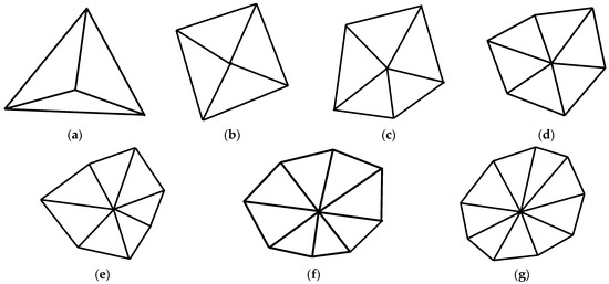 Different types of polygons. (a) k = 3; (b) k = 4; (c) k = 5; (d) k = 6; (e) k = 7; (f) k = 8; (g) k = 9.