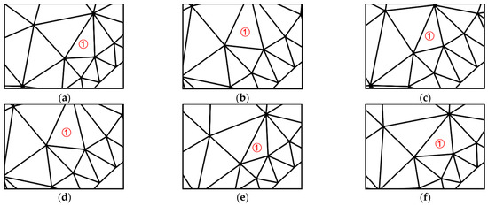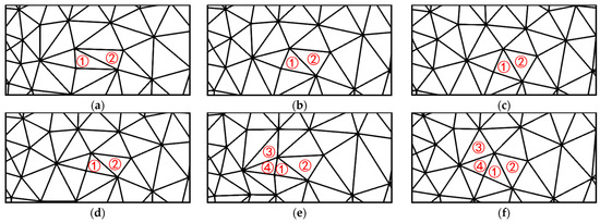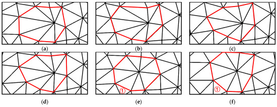 As shown in Figure 21a–e, after optimization, element ① still maintains its narrow and elongated shape. And, this algorithm can effectively improve the shape of element ①, as shown in Figure 21f.