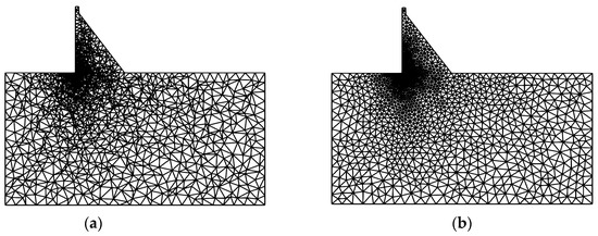 Finite element calculation results of Example 1. (a) Initial mesh; (b) refined mesh.