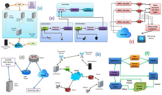 The next period we present is between 2011 and 2019. One major work in this field presents an application called Monitorix, which is a video-based traffic surveillance multi-agent system described by B. Abreu et al. [23]. The Monitorix agents are summarized in four stages, depending on the type of data processing they implement: sensors and performer stages, the aim description shuttle, the application assistant shuttle, and the user assistant shuttle. M. T. Dlamini et al. [24] presented several scenarios in which a botnet by stoves may impact an electrical network and future threats to the life of health systems, as well as how a distributed denial of service could be utilized to vanquish the competition and amplify its revenues of Telcos. In an eHealth scenario, concerning the development of an intelligent medical environment and providing omnipresent services, P. Chatterjee et al. [25] offered a model that takes an all-encompassing approach to the Internet of Things. In addition, an elaborate framework for storing privacy data in VS as a watermark was proposed by W. Zhang et al. [26]. The simulation results of this work showed that the proposed algorithm can incorporate all protected data on a video without compromising the visual quality. Consequently, the proposed video surveillance system is capable of monitoring unauthorized persons in a confined environment, defending the secrecy of the authorized persons but, simultaneously, permitting sheltered information to be revealed safely and reliably. Additionally, A. J. Lipton et al. [27] outlined a step-by-step procedure for introducing moving targets via real-time video streaming, classifying them into specified groups based on image-based characteristics, and then successfully tracking them. The resulting system defines the objects of interest, rejects the state of the background, and constantly observes the long distances and periods, despite obstructions. It also notes any changes in appearance and dismissal of the moving target. Moreover, a method for Internet-of-Things-aware Process Modelling, which utilizes UML use cases and an existing BPMN-based notation that is IoT-aware, was presented by R. Petrasch and R. Hentschke [28]. Moreover, alternative approaches to consolidating WSNs into the Internet, and a summary of possible challenges that should be addressed soon, were evaluated by Md. S. Mahmud et al. [29]. This work unveiled that the denouements currently developed on the Internet are not appropriate for the resources of the narrow sensor node, and therefore, new mechanisms should be produced to conform to the potentialities and restrictions of WSNs. Integrated research on connectivity and energy-saving aspects and solutions of the IoT in the use of various wireless radio access technologies was presented by A. Javed et al. [30]. It also discusses the possible issues of the future use of IoT. Furthermore, a human vital sign monitoring system that comprises the measurement of body temperature and pulse rate of patients from remote locations was presented by P. Hu et al. [31]. This system occupies certain features, such as minor intrusiveness to the users, and helps both caretakers and physicians by providing them with leisure in taking care of patients.