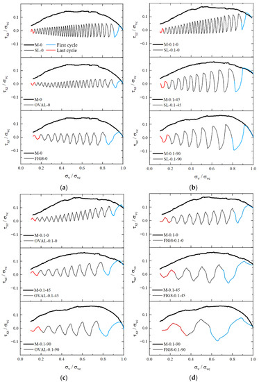 When CSR = 0.1, SL-0.1-0, SL-0.1-45, and SL-0.1-90 liquefied at the 25th, 11th, and 8th cycle, respectively; OVAL-0.1-0, OVAL-0.1-45, and OVAL-0.1-90 liquefied at the seventeenth, ninth, and seventh cycle, respectively; FIG8-0.1-0, FIG8-0.1-45, and FIG8-0.1-90 liquefied at the ninth, eighth, and third cycle, respectively. It can be seen that as θ increases, samples were easier to liquefy.