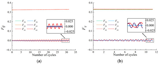 In Equation (8) Fxx, Fyy, and Fzz were close to 1/3, while the other fabric tensors were close to 0.