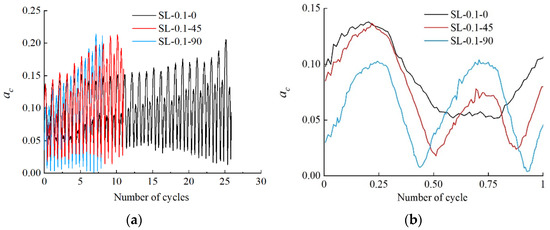 Evolution of ac of SL-0.1: (a) whole process and (b) first cycle.