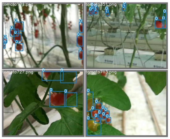 Figure 5 is the original image of the tomato dataset, and Figure 6 is the image after the detection of the dataset using the YOLOv7B-CBAM model. It can be seen that the blocked tomato in the lower left corner can be accurately identified, and the recognition effect of small objects in dense scenes in the upper right corner image is also very good. Specific experimental data are shown in Table 3.