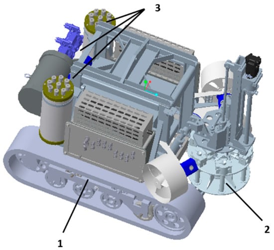 Three-dimensional model of SMDV. 1—crawler travel mechanism, 2—core extraction mechanism, 3—power and control device.