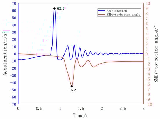Simulation curve of SMDV-to-substrate angle and mass acceleration.