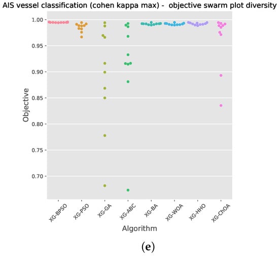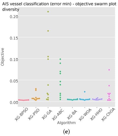 To validate the performance of the proposed approach, as well as demonstrate the optimization potential of the introduced modified metaheuristic, two sets of experiments were conducted. The first set of experiments leveraged XGBoost to classify vessel types based on the available AIS data. Two objective functions were utilized for classification. The first utilized Cohen’s kappa metric, while the second relied on the classification error rate. The second experimental set relied on AIS positional data to predict the vessel trajectory.