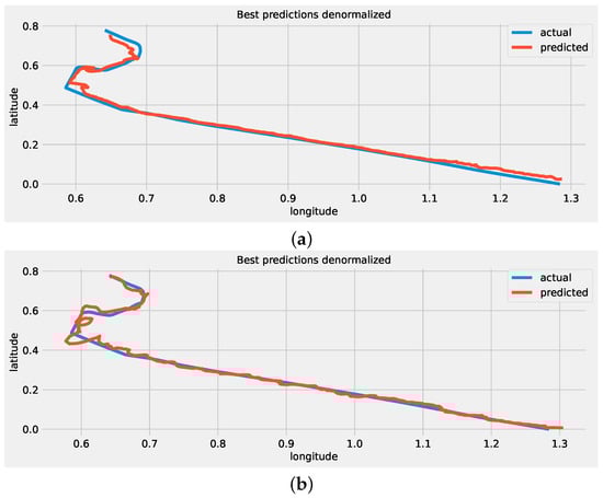 In terms of metaheuristic optimization, research topics are various, and the selected examples represent different types of trajectory prediction. In the case of Gian et al. [], inland water was the predicted space, instead of the open water examples explored in most works. Furthermore, the paper did so by employing a GA-based LSTM solution. The work also applied AIS data. The next problem optimized using GA after river-path prediction was the flight optimization of unmanned aerial vehicles (UAV) by Cacchiani et al. []. Their goal was to provide easy use of an UAV for most users, by adjusting its speed based on the communication range of the users. The final solution included the biased random-key genetic algorithm (BRKGA) with a simulated annealing algorithm (SAA). Rapid-low thrust trajectory predictions in deep space were performed using the proposed LSTM GA-optimized solution [], and employing AIS data. A different algorithm was explored by Wood et al. [], which was a hybrid bat flight optimization algorithm (HBFO), for the problem of well-bore trajectory prediction.