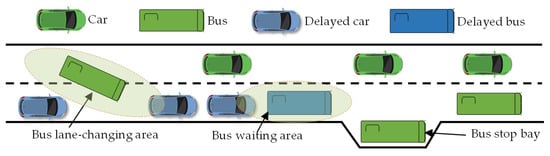 However, the development of CAVs is not directly to perfection. A mixed traffic flow composed of CAVs and human-driven vehicles (HVs) will exist for a long time due to technological immaturity and other factors [17,18]. Considering the previous content in general, studies on mixed traffic flow are urgently needed at the present stage, especially how mixed traffic flows affect bus stops.