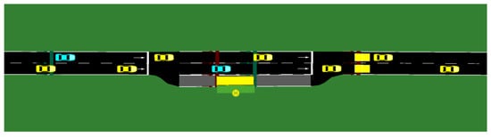 In addition, according to differences between CAVs and HVs in perception, decision-making, and control, CAVs have a significant advantage over HVs [50,51]. According to the related research [52], the desired time headway during car-following and lane-changing of CAVs is set to be 1 s. When a CAV follows an HV, its longitudinal control model degrades into the Krauss model, which is also an HV car-following model. The specific parameters of car-following model and lane-change model are shown in Table 5, where H car refers to a car controlled and operated by a human driver; CA car refers to a car that utilizes advanced communication and automation technology to exchange and interact with real-time data between cars and other vehicles, transportation infrastructure and traffic management systems to improve driving safety, efficiency, and convenience; H bus is a bus controlled and operated by a human driver; and CA bus refers to a bus that uses advanced communication and automation technology to exchange and interact with real-time data between public transport vehicles and other traffic participants, infrastructure, and traffic management systems to improve the efficiency, reliability, and safety of the public transport system.