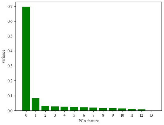 Next, the data features are extracted by PCA. As shown in Figure 8, the first seven principal components can contain more than of the information of the raw data. So the first seven principal component features are selected.