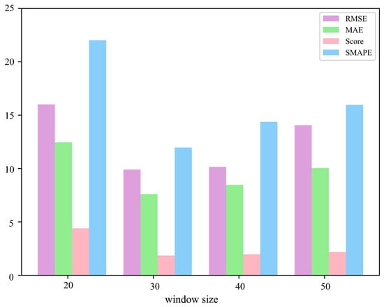 We also conducted comparative experiments for different window sizes and finally set the window size to . The comparative experimental results of the different window sizes are shown in Table 4 and Figure 11.