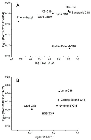 - Snydera, L.R.; Dolan, J.W.; Carr, P.W. The hydrophobic-subtraction model of reversed-phase column selectivity. J. Chromatogr. A 2004, 1060, 77–116. [Google Scholar] [CrossRef]