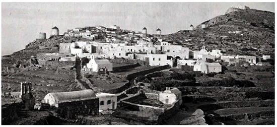 Windmills in Sikinos Chora at the end of the 19th c. [20].
