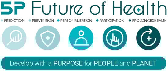 As innovators, we should be empathetic and create a Future Of Health that we desire, a so-called new medicine, a novel way of employing technology for Prevention, Prediction, and Precision/Personalisation for an empowered/engaged and Participating individual that will benefit from Prolonged health (the health span needs to equal the lifespan, which is extended)—the 5Ps of the Future of Health (see Figure 1).