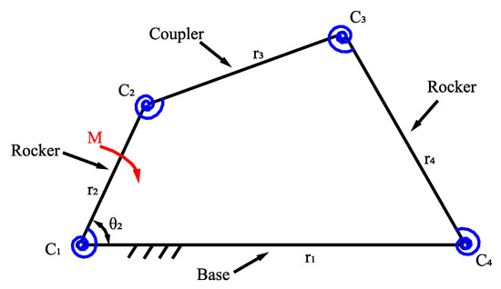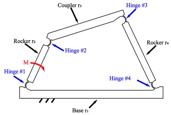 Parameter description of Hinges for the desired four-bar linkage mechanism.