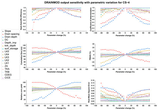 DRAINMOD output sensitivity with parametric variation for field CS-4.
