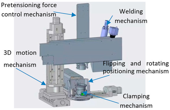 The welding mechanism mainly consists of a laser welding machine, a protective gas supply system, and a visual recognition system. The working mode is a combination of a three-dimensional motion mechanism and a flipping and rotating positioning mechanism to provide planar and vertical positioning, as well as rotation and flipping positioning. Through the visual system, the welding position and focus distance of the weld seam are identified, and welding work is carried out based on parameter design.