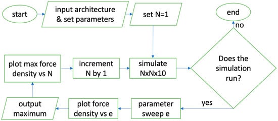 Furthermore, for this type of artificial muscle [25,26], the results show that the output force density at N = 10 is already approximately equal to the saturation value. Hence, simulations of laterally larger arrays should not be necessary to predict their behavior in terms of output force density. This array size can now be used as the optimal standard for simulations of such actuators, while the specifics of the individual micro capacitor can be varied.