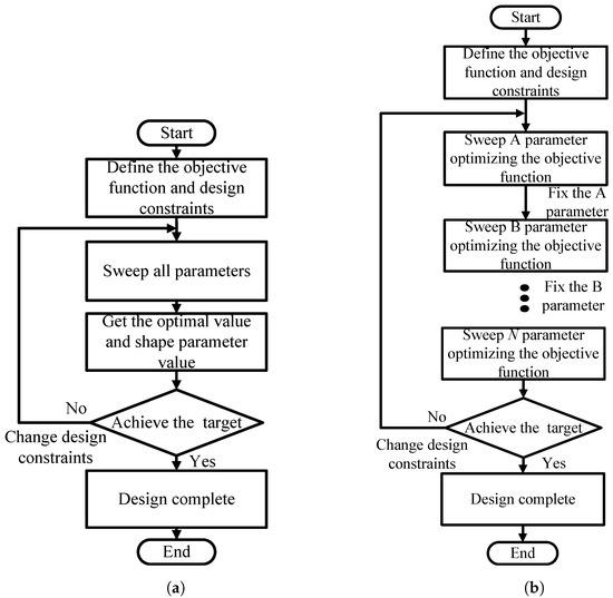 The conventional IPT coil design flowchart: (a) Brute-force sweep method (b) Sequential sweep.