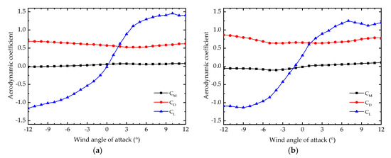 Aerodynamic coefficient of the truss girder. (a) construction stage. (b) completion stage.