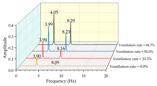 and the results are presented in Table 4 [49]. The values show that changing the railing ventilation rate does not alter the Strouhal number of the girder section corresponding to the primary peak of vertical VIV, suggesting that the railing ventilation rate minimally impacts the primary vortex driving the bridge to vertical VIV. However, the primary vortex driving torsional VIV was influenced.