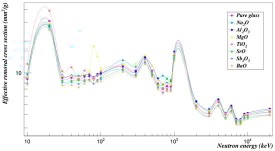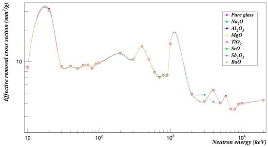 The neutron effective removal cross sections of the studied glass with SrO modifier.