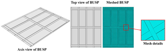To investigate the impact of size parameters of the bi-directional U-ribbed stiffening plate (BUSP) on structural stress, finite element analysis (FEA) models were constructed for a portion of the bridge using the ABAQUS software. Two types of structural models were primarily established for this analysis.