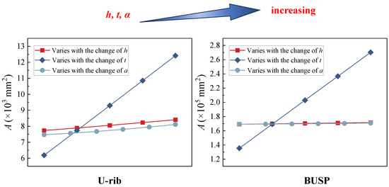 U-rib and BUSP areas vary with changes in h, t, and a.
