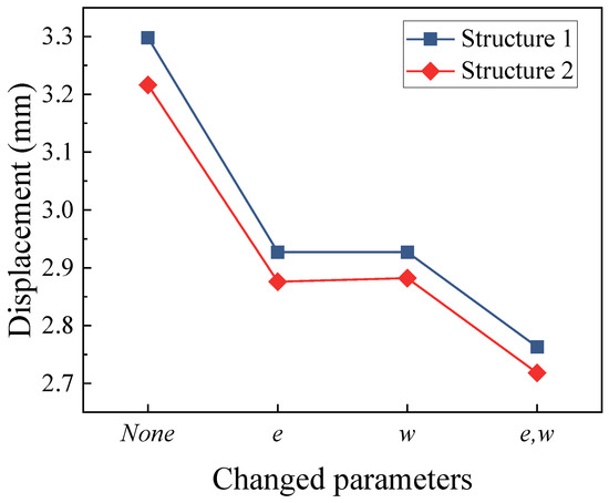 To investigate the effects of these spacing parameters, three distinct models with varying parameters were constructed, as depicted in Figure 23. Model 1 represents the original structure of the BUSP, while Model 2 reduces the value of to half of the original structure. In Model 3, the value of is halved compared to the original structure. Model 4 simultaneously reduces both and to half of their original values.