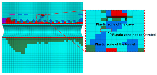 The orthogonal test design is based on the idea of equilibrium dispersion, using a combination of mathematical theories on the basis of the construction of an orthogonal table. There are 16 groups of data which are numerically simulated in the orthogonal table. By constantly adjusting the distance between the karst cave and the tunnel, the minimum unconnected zone appeared between the plastic zone of the karst cave and the plastic zone of the tunnel (see Figure 16). At this time, the distance between the karst cave and the tunnel is at the critical safety distance.