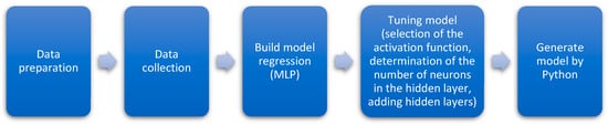 The research involved a machine learning process using the Python environment (Figure 1). Currently, Python has become the most popular and also the most effective tool for designing and executing machine learning models. In this study, Multilayer Perceptron (MLP) networks were designed and performed in a regression problem using Pandas and scikit-learn libraries. The machine learning process proceeded according to predetermined stages.
